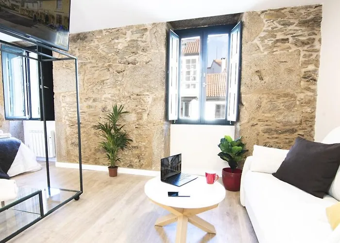 De accommodatie biedt een complete keuken met faciliteiten. Pub Momo en A Vinoteca Do Mercado serveren een breed scala aan gerechten en zijn te bereiken binnen 5 minuten lopen. Santiago de Compostela ligt op 15 km afstand en bushalte Virxe da Cerca - Praza de Abastos 2 is naast dit 1-badkamer appartement.